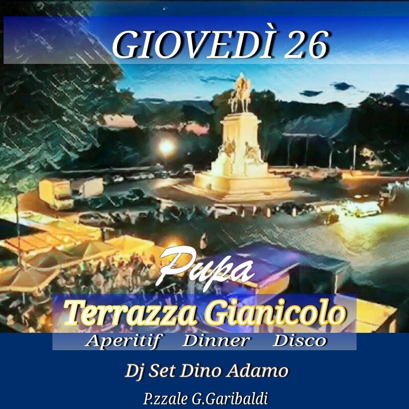 Giovedi 26 luglio TERRAZZA GIANICOLO APERITIVO DJ SET DJ SET INFO LIMONI 392.0731374